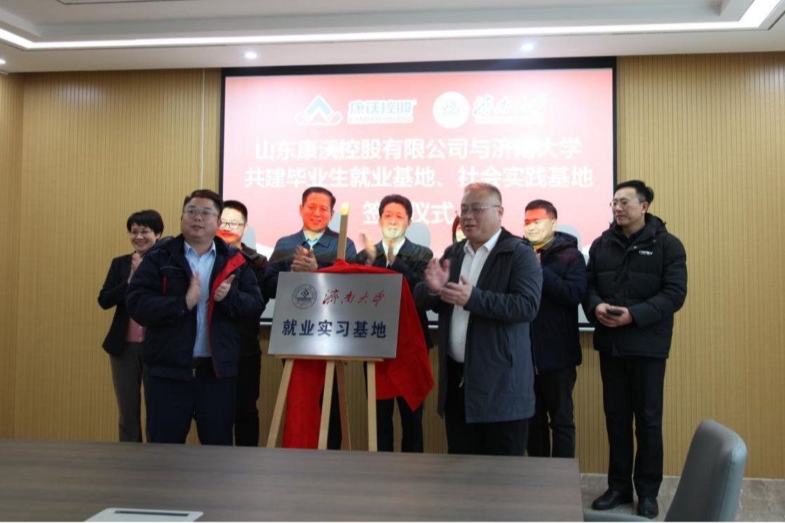 在山东康沃控股有限公司,朱中华对黄加栋一行的到来表示欢迎,介绍了鲁西新区产业布局、重点产业发展等情况,希望双方进一步开展深入合作。黄加栋表示,太阳成集团tyc151cc将以此次揭牌为契机,充分发挥自身优势,结合企业特色,加强产教融合,为鲁西新区高质量发展作出新的贡献,为毕业生提供更多的就业机会和更广阔的发展空间,实现互惠互利,合作共赢。座谈会上,黄加栋与康沃控股有限公司董事长胡庆松共同为康沃控股有限公司与太阳成集团tyc151cc共建毕业生就业基地和社会实践基地揭牌。