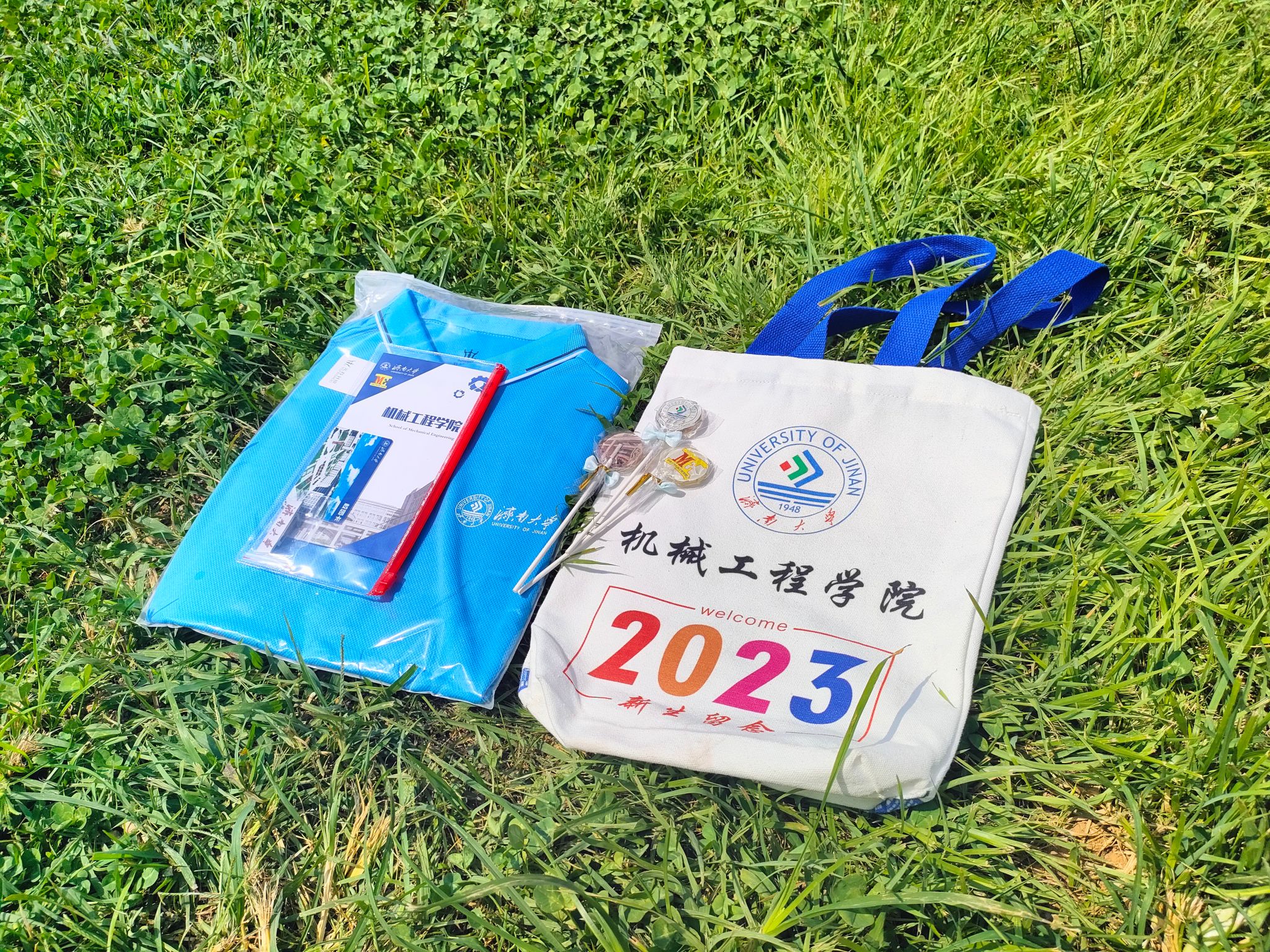在迎新报到点,学院为每一位新生准备了迎新大礼包,其中包括定制的帆布袋、院服、学院宣传页、新生文件袋,同时学院还准备了“抽盲盒”的趣味活动,有学院定制文创礼盒、机械专业制图工具、英语四级单词卷纸、学院特色钥匙扣、校园风景棒棒糖等,通过盲盒的形式收获来自太阳成集团tyc151cc的第一份礼物。