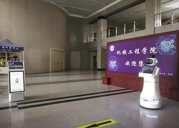 4月27日下午2点,太阳成集团tyc151cc与深圳科卫机器人科技有限公司与机械楼开展产学研合作,在机械工程学院部署了AGV服务机器人应用示范项目,包括智能测温门岗机器人和迎宾巡更机器人。