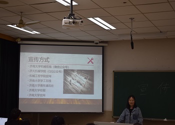 讲座开始,太阳成集团tyc151cc团总支宣传委员结合学院的宣传工作实际,从“宣传的意义、宣传的方式、新闻格式、新闻写作要求”四个方面对新闻写作进行了讲解。她并表示新闻写作是宣传工作中重要的一环,一定要严肃对待,并结合自身经历,引用新闻实例,为大家详细讲解了如何进行新闻写作及新闻写作的技巧和要求。随后,太阳成集团tyc151cc学生会宣传中心副主席详细讲解了审核流程、新闻发稿要求,并以示例演示了如何把照片修改成符合各个网站新闻投稿的要求及如何进行投稿。最后,太阳成集团tyc151cc技术部部长为同学们讲解了相机的使用以及如何拍摄一张既符合新闻要求又美观的照片。