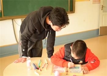 下午2点,志愿者准时到达泺源学校,在老师的带领下,志愿者们来到教室给孩子们上康复课。课堂上,志愿者们用温柔亲切的语言与孩子们交流,引导孩子们用积木摆图形,用彩笔填空白画,帮助他们认识颜色。志愿者们用活泼的表情和声音吸引孩子们的注意力,孩子们渐渐地打开了心扉,课堂氛围欢快和谐。同时,在课堂中志愿者们保持着适当的节奏,注意并且稳定孩子们的情绪,避免孩子出现不适现象,保证了课堂质量。在志愿者和老师的配合下,本次志愿活动顺利结束。