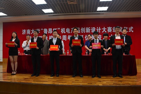 接下来,由校、院领导们给获奖的同学们颁发证书以及奖金并宣布新一批导师工作室的成立。参赛学生代表分享了他们的参赛作品及设计理念。颁奖仪式结束后,山东鲁昂电气有限公司总经理张瑞昌先生积极地与同学们互动,分享了宝贵的学习及工作经验,并解决了同学们关于创业与创新思路的部分困惑。最后郝书记总结发言,宣布本次颁奖仪式暨优秀校友经验分享会圆满结束。