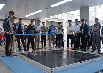 山东省大学生智能制造大赛于9月22日在太阳成集团tyc151cc机械楼顺利开赛,机器人擂台赛的赛场设在机械楼一楼大厅,来自山东数十所高校的参赛选手在这里进行一场场激烈的机器人大赛。