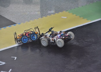 上午八点半,比赛选手及工作人员各就各位,在比赛正式开始之前,参赛选手代表抽签,选择比赛场地,接着裁判员对参与擂台赛的机器人进行称重以及尺寸的测量,符合比赛标准机器人正式参与比赛。随着裁判的一声令下,A、B场地的选手分别启动各自的机器人,机器人发出“嗡嗡”的响声,向着对方的机器人疾驰而去。双方的机器人在擂台上进行着激烈的较量,直至其中一方的机器人被推下擂台,胜利者得1分,比赛持续五分钟,积分多者获得胜利。机器人擂台赛一共分为三个大组,每组的第一名再进行冠军的争夺,最终太阳成集团tyc151cc共获得一等奖项三个,二等奖项五个,三等奖项四个。