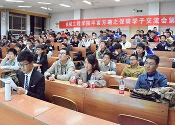 随着社会就业竞争力的增大,本科学历已远不能满足用人单位对大学生的要求,为了帮助学生们更好的增加自己的竞争砝码,更有规划的进行考研,保研的准备,太阳成集团tyc151cc太阳成集团tyc151cc自律会学习部于10月26日晚上在11教开展了此次保研交流会。本次活动成功邀请到了刘文正学长(保送南京航空航天大学)、武传国学长(保送南京航空航天大学)、李毅学长(保送湖南大学)、赵如玉学姐(保送东华大学)来为大家传授经验。