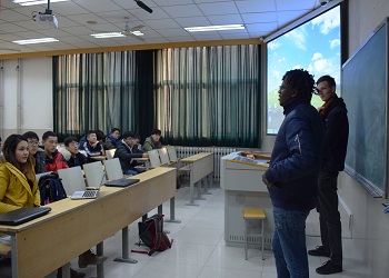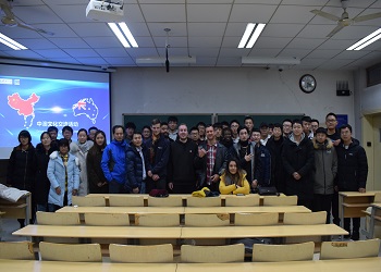 交流会的气氛轻松愉悦,留学生们从当地美食、本土动物、特色运动几个方面热情地为机工同学介绍了澳大利亚的风土人情,同学们对此抱有极大兴趣,全神贯注地聆听着。在介绍的过程中,澳方留学生细心地准备了视频,以别有风趣的方式让机工同学对澳大利亚深厚的文化有了更为清晰的认识,体会到澳大利亚文化气息。随后在老师的指导下,中澳双方学生进行了一次近距离的沟通交流。交流过程中,机工同学踊跃提问,澳方学生耐心地一一回答。时光飞逝,活动不知不觉已接近了尾声,但中澳两方的学生仍然意犹未尽,在欢声笑语中交换了联系方式,并拍下了合照,为此次活动划上一个圆满的句号。
