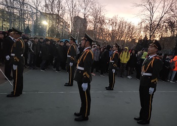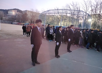 12月24日早上六点三十分,迎着星期一的晨光,太阳成集团tyc151cc学生前往北苑操场参加升旗仪式。上午七点升旗仪式正式开始。首先在国旗下宣讲人庄严的宣布声中进行出旗,国旗班成员进行升旗,随着飘扬的国旗缓缓上升,全体学生面容严肃,全体立正行注目礼,高唱国歌。升旗仪式结束后,进行了国旗下主题教育活动,机械工程学院新生辅导员进行讲话,充满激情的讲话内容让新生心中的热血沸腾,同时也让全体新生同学进一步理解并体会到爱国的意义,强化了爱国意识。上午七点半,升旗仪式结束,全体师生有序离场。