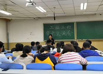 交流会伊始,专业老师对近年来工业工程专业面临的严峻形势、学业情况和发展前景做了简要概述。随后学长开始介绍考研与保研的经验,将自己在大学四年的学习生活经历与大家分享,并提出了选择学校的重要性,比如避开竞争激烈的院校,选择适合自己成绩的学校等。其中,学长格外强调了英语和数学学习在考研中的重要性以及面对考研失利后的考研调剂和非本专业的跨专业考研的相应对策。除此以外,对于考取本校研究生的情况,也有学长对此介绍。介绍完研究生方面后,选择就业的学长们也分享了就业有关的公众号,为找工作给出了自己的建议,分享了自己找工作的经验。最后参加国家公务员考试的学长分享了公考的情况和经验,为同学们带来了精彩的国家级别考试的介绍。