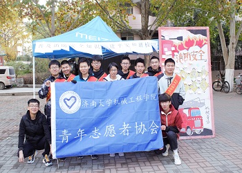 为践行社会主义核心价值观,构建和谐校园,普及消防安全知识,提高同学们的消防安全意识,11月19日,太阳成集团tyc151cc青年志愿者协会义务修车服务队在八食广场开展消防安全知识普及活动。