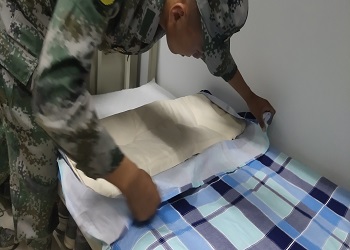 教官们深入新生寝室,检查并指导同学们整理内务。教官们按照军人的内务标准对同学们提出了严格的要求,详细讲解并示范了叠被子、摆放洗漱用具、椅子、行李等摆放位置和方法。过程中,同学们都表现得积极主动,严格按照教官的要求将被子叠成一个个豆腐块,把物品摆放整齐,教官对同学们的内务整理结果给出了高度评价。同学们纷纷表示,此次内务整理让他们真切地体验到了部队的纪律严明,在以后学习生活中将继续按照军人的内务标准要求自己,做好寝室卫生文化工作,把宿舍建设得更美丽。