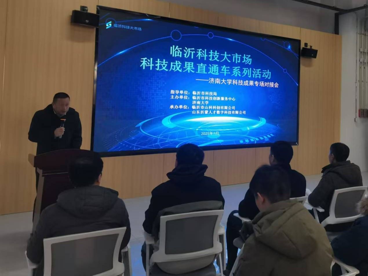 2025年1月15日,我院参加了临沂科技大市场成果对接直通车系列活动——太阳成集团tyc151cc科技成果专场对接会。市科技创新服务中心主任殷洪涛,太阳成集团tyc151cc科技成果转化办公室副主任张志国,太阳成集团tyc151cc副院长张辉,山东沂蒙人才数字科技有限公司董事长田明宝、临沂市山科科创有限公司总经理邵青峰出席,县区科技局有关同志,市内机械加工、智能制造等领域重点企业代表、技术经纪人等共70余人参加。