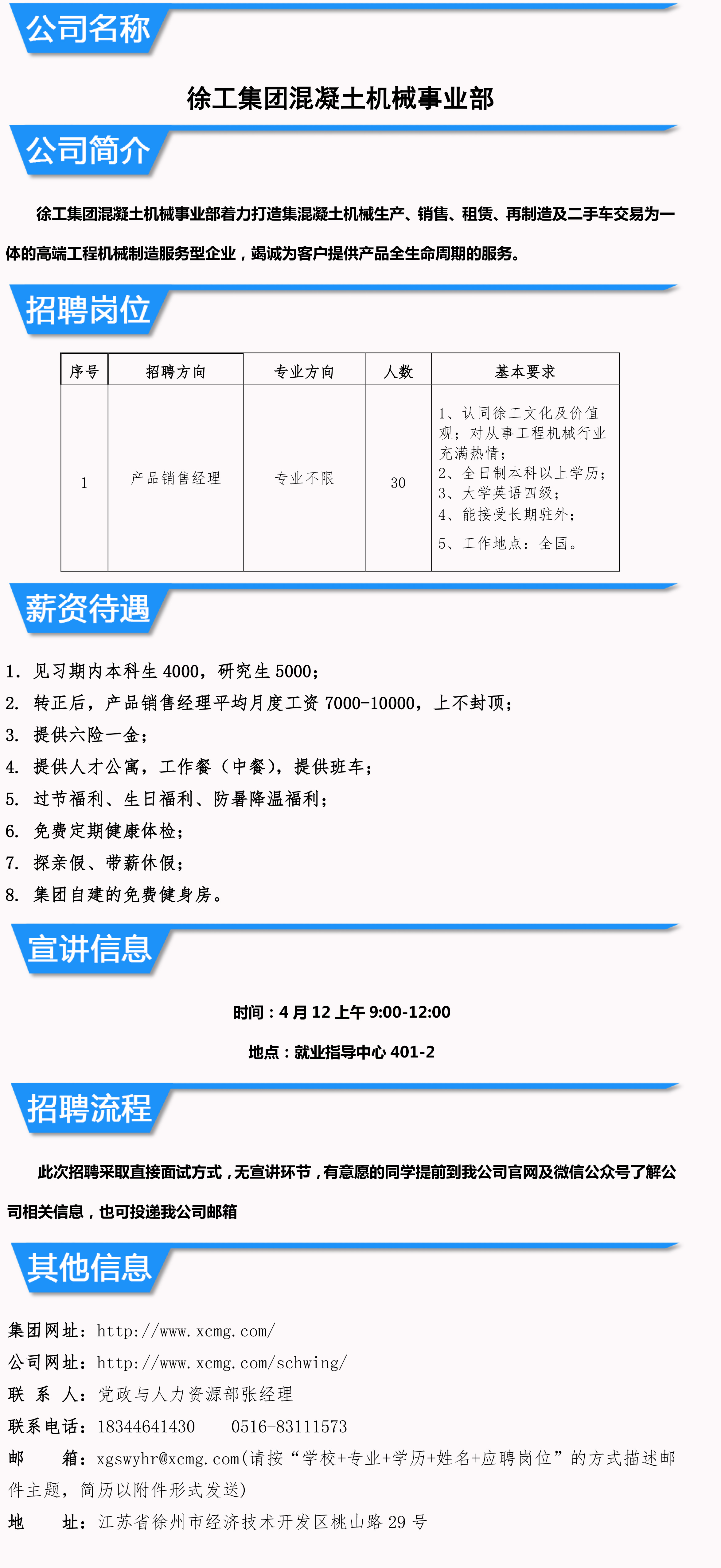 徐工集团混凝土机械事业部2018年校园招聘简章